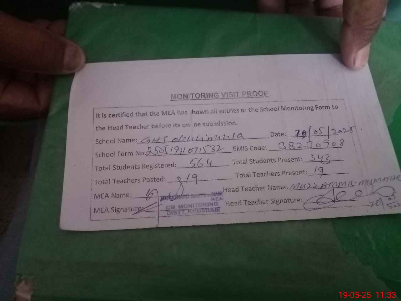 | Certified that this School was Inspected by the Undersigned MEA/DMO Today and the Information Stated Above is as Per Record. | |||||