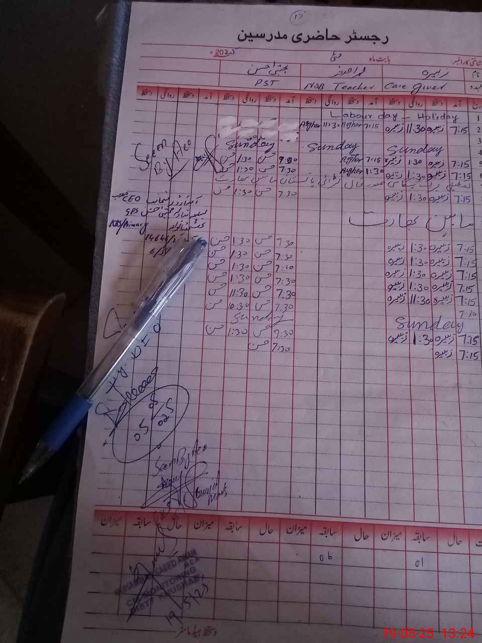 | CNIC | Full Name | Designation | R/C | Absence during last cal. month |
