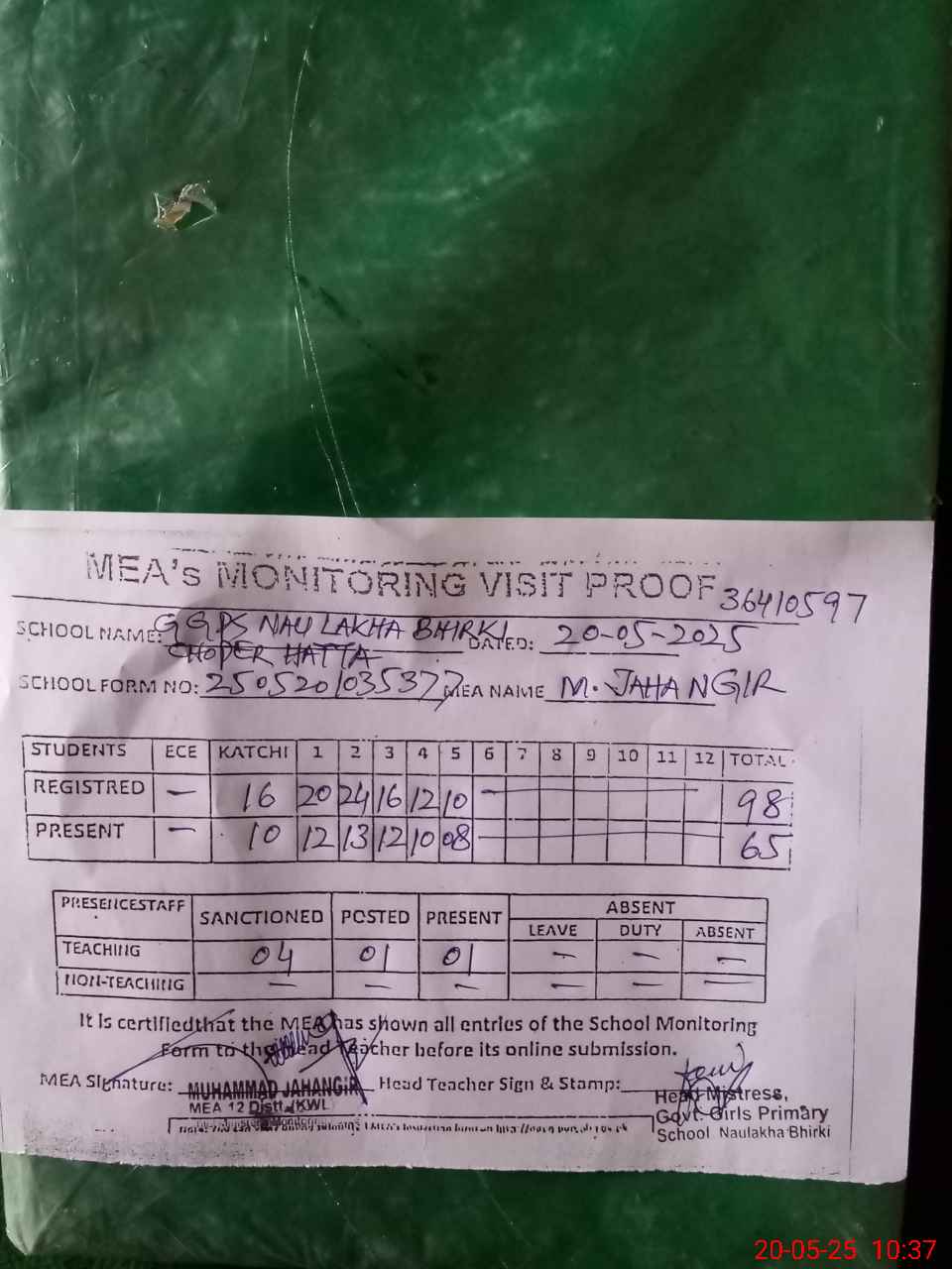 | EMIS Code: 36410597 | Name of School: GGPS NAULAKHA BHIRKI | |||
