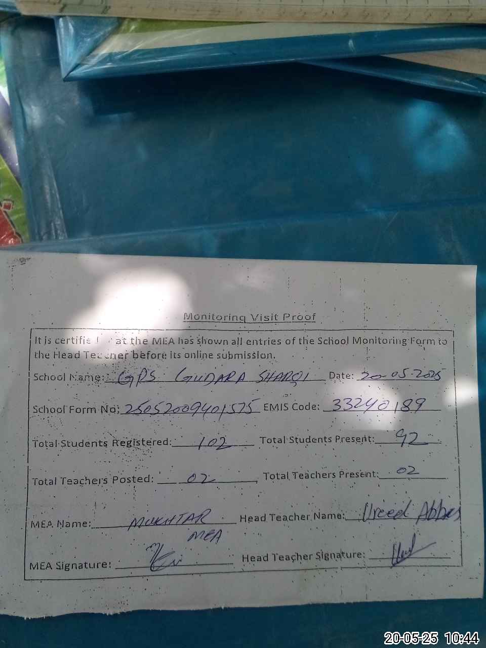 | EMIS Code: 33240189 | Name of School: GPS GUDARA SHARQI | |||