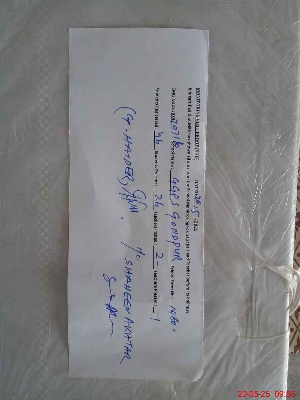 | EMIS Code: 38470716 | Name of School: GGPS GOND PUR | |||