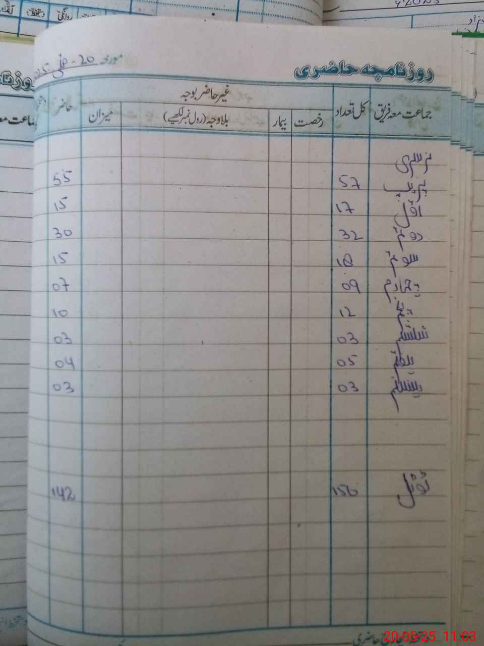 | CNIC | Full Name | Designation | R/C | Absence During Last Calender Month |
