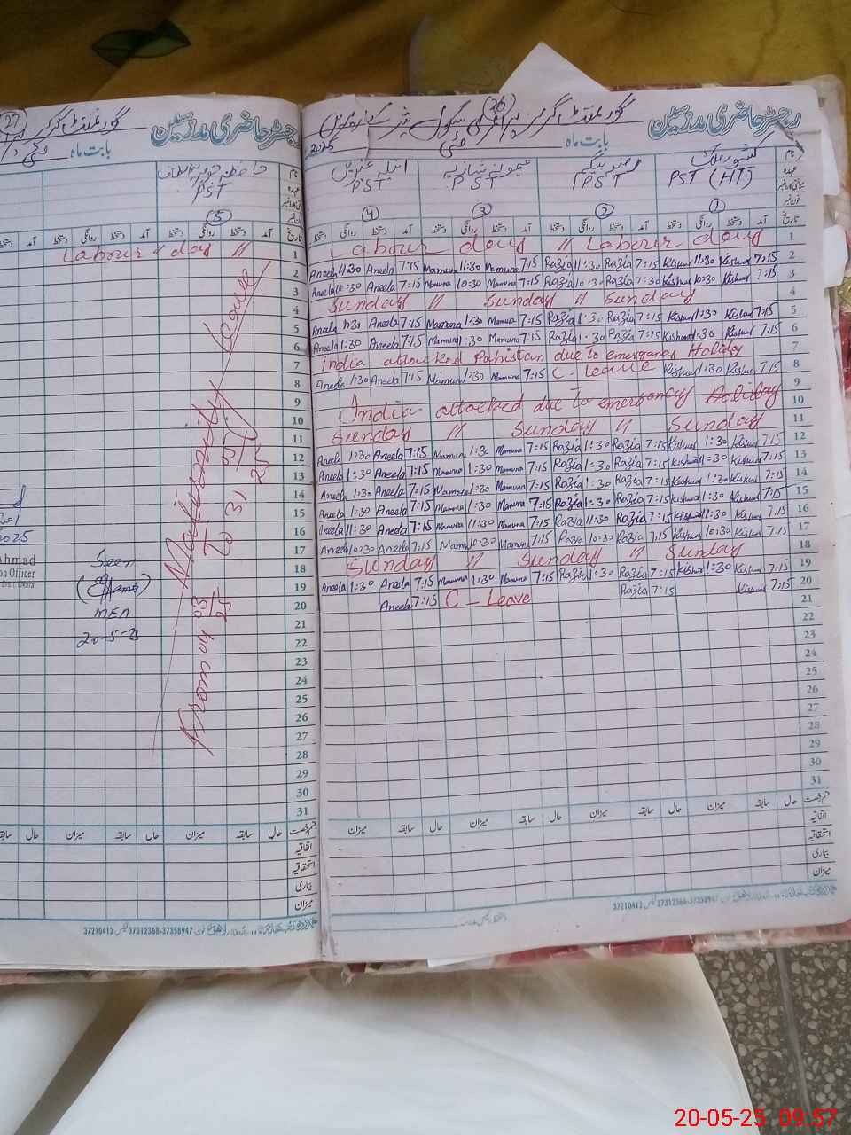 | CNIC | Full Name | Designation | R/C | Absence During Last Calender Month |