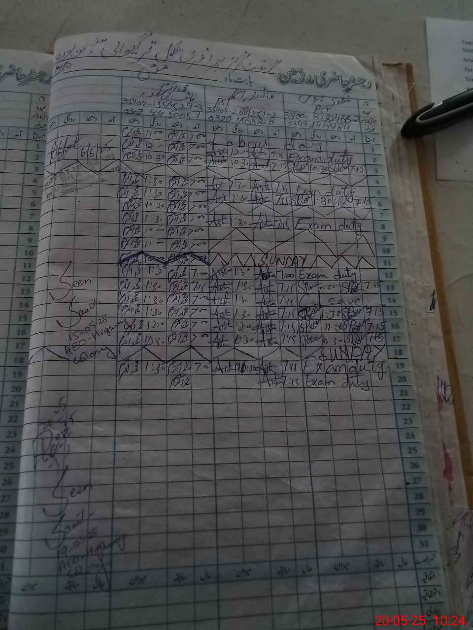 | 33**** | Sh**** Pa**** | PST | Regular | 0 | 0 | 0 | 0 | 0 | 0 | 0 | 0 | 0 | Exam Duty |