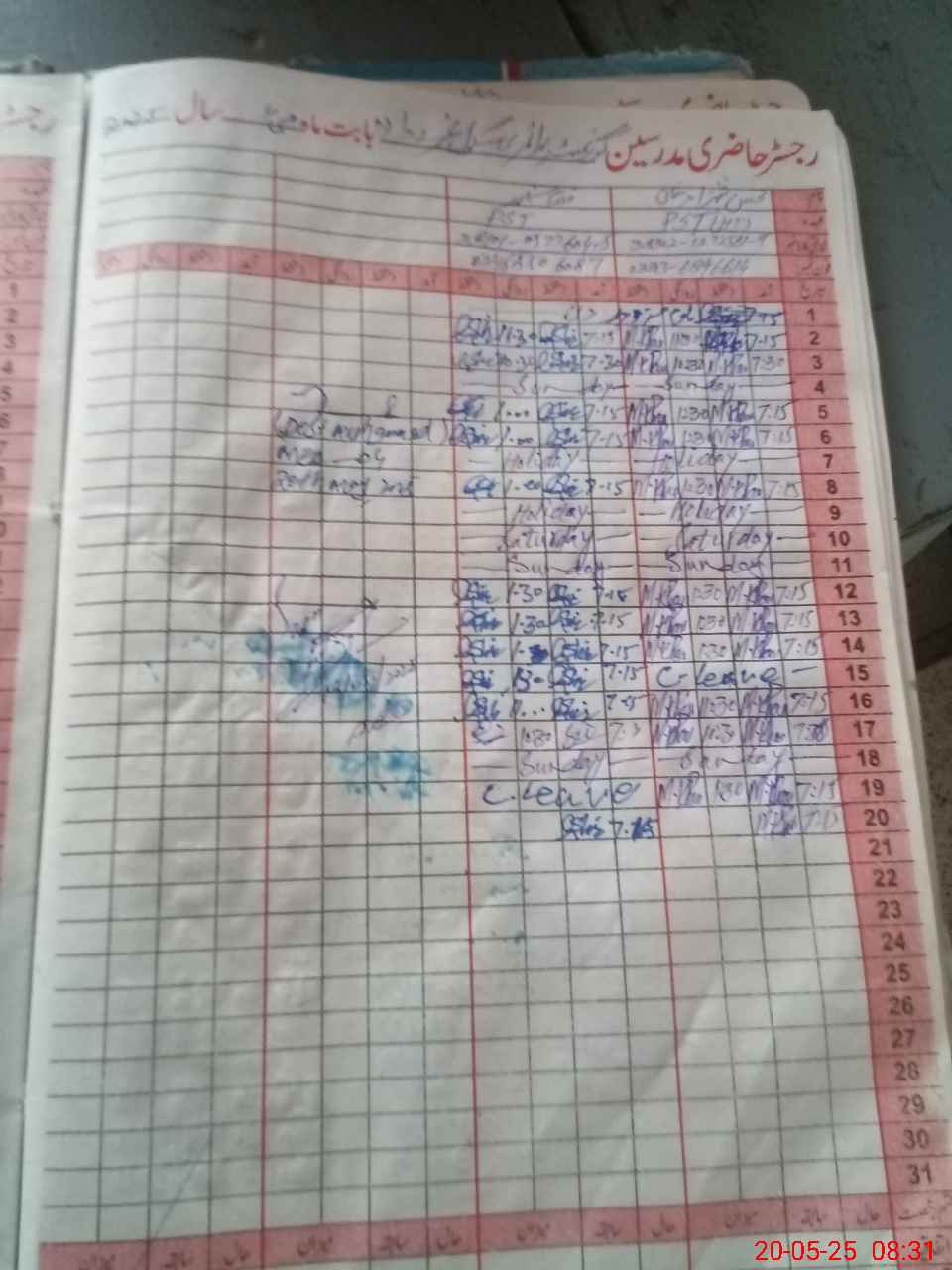| CNIC | Full Name | Designation | R/C | Absence During Last Calender Month |