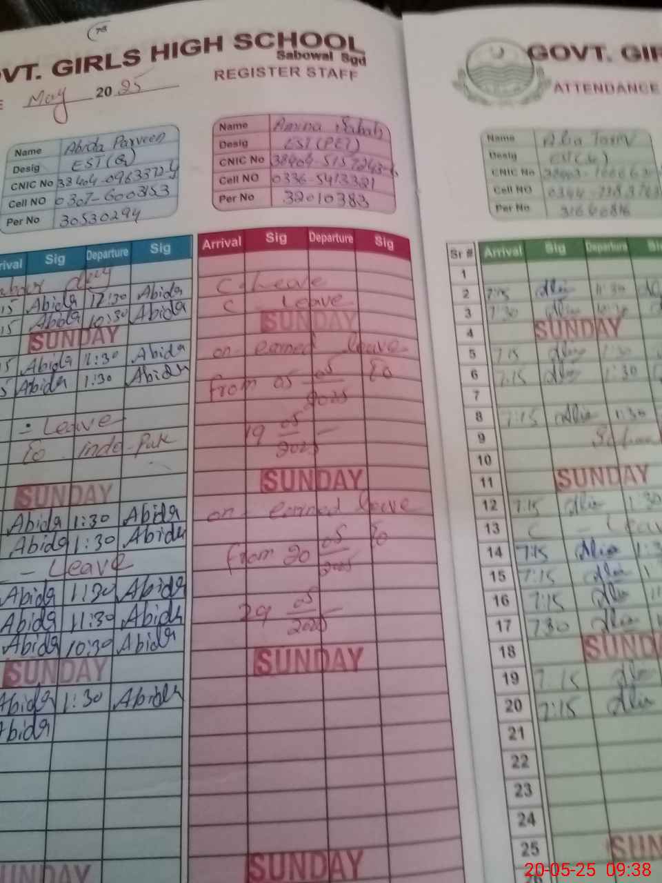 | CNIC | Full Name | Designation | R/C | Absence During Last Calender Month |