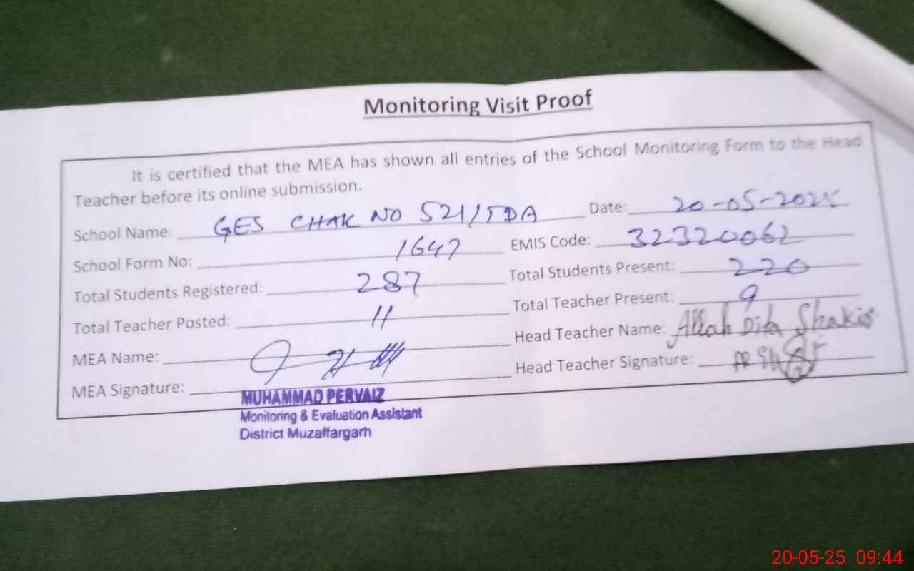 | EMIS Code: 32320062 | Name of School: GES CHAK NO.521 TDA | |||