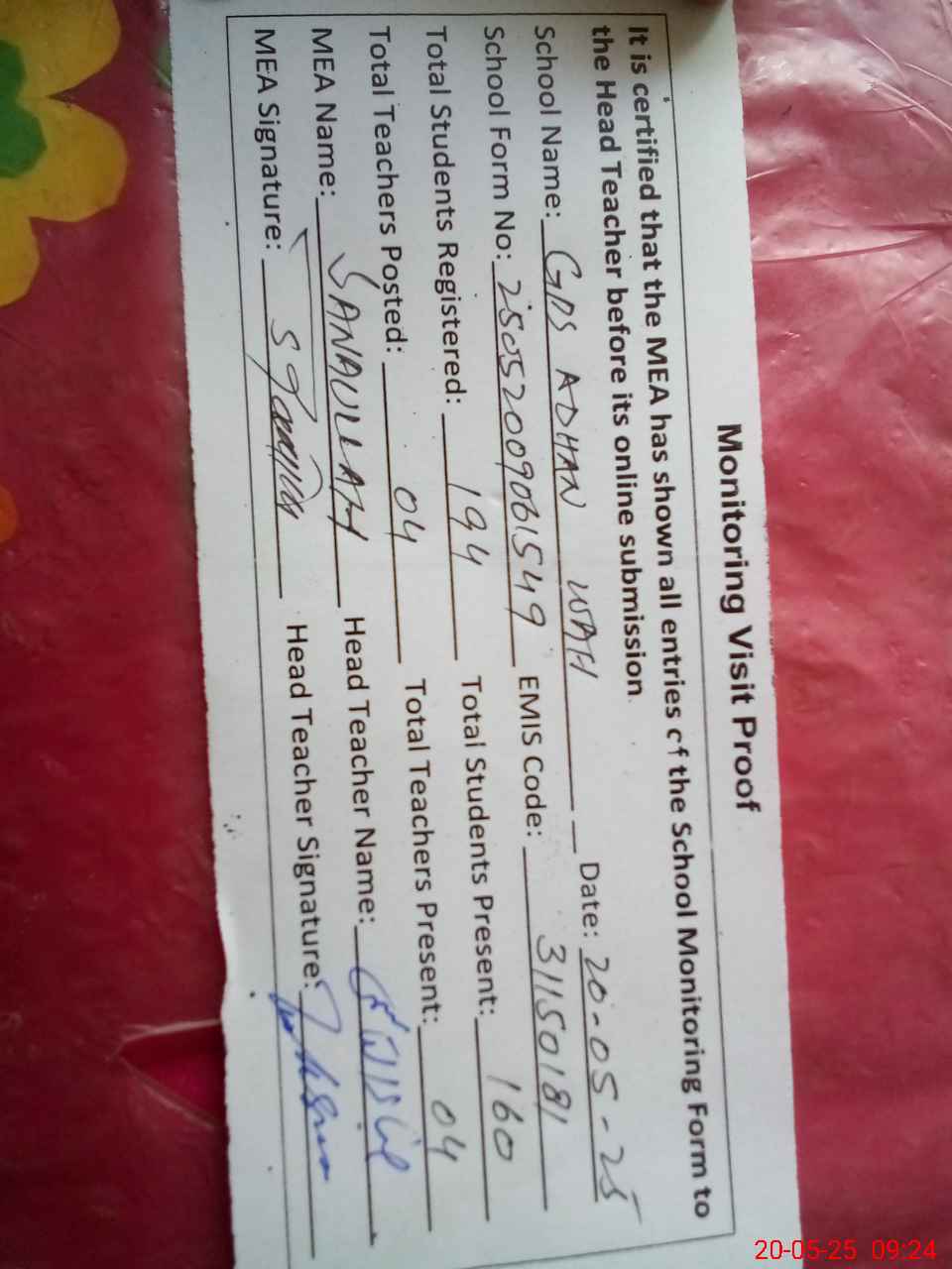 | EMIS Code: 31150181 | Name of School: GPS ADHAN WAH | |||