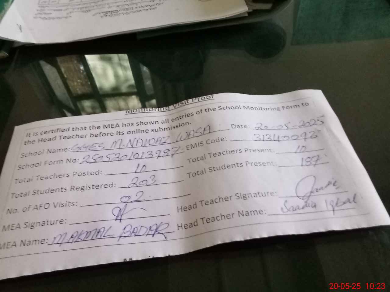 | EMIS Code: 31340093 | Name of School: GGES MUHAMMAD NAWAZ WASA | |||