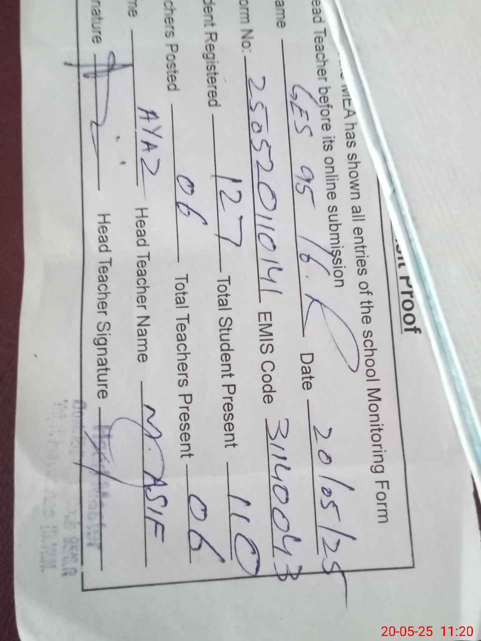 | EMIS Code: 31140043 | Name of School: GES CHAK 95/6-R | |||