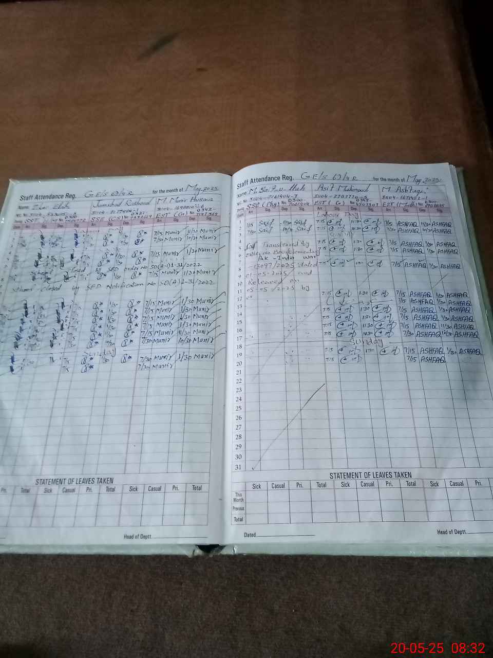 | CNIC | Full Name | Designation | R/C | Absence During Last Calender Month |
