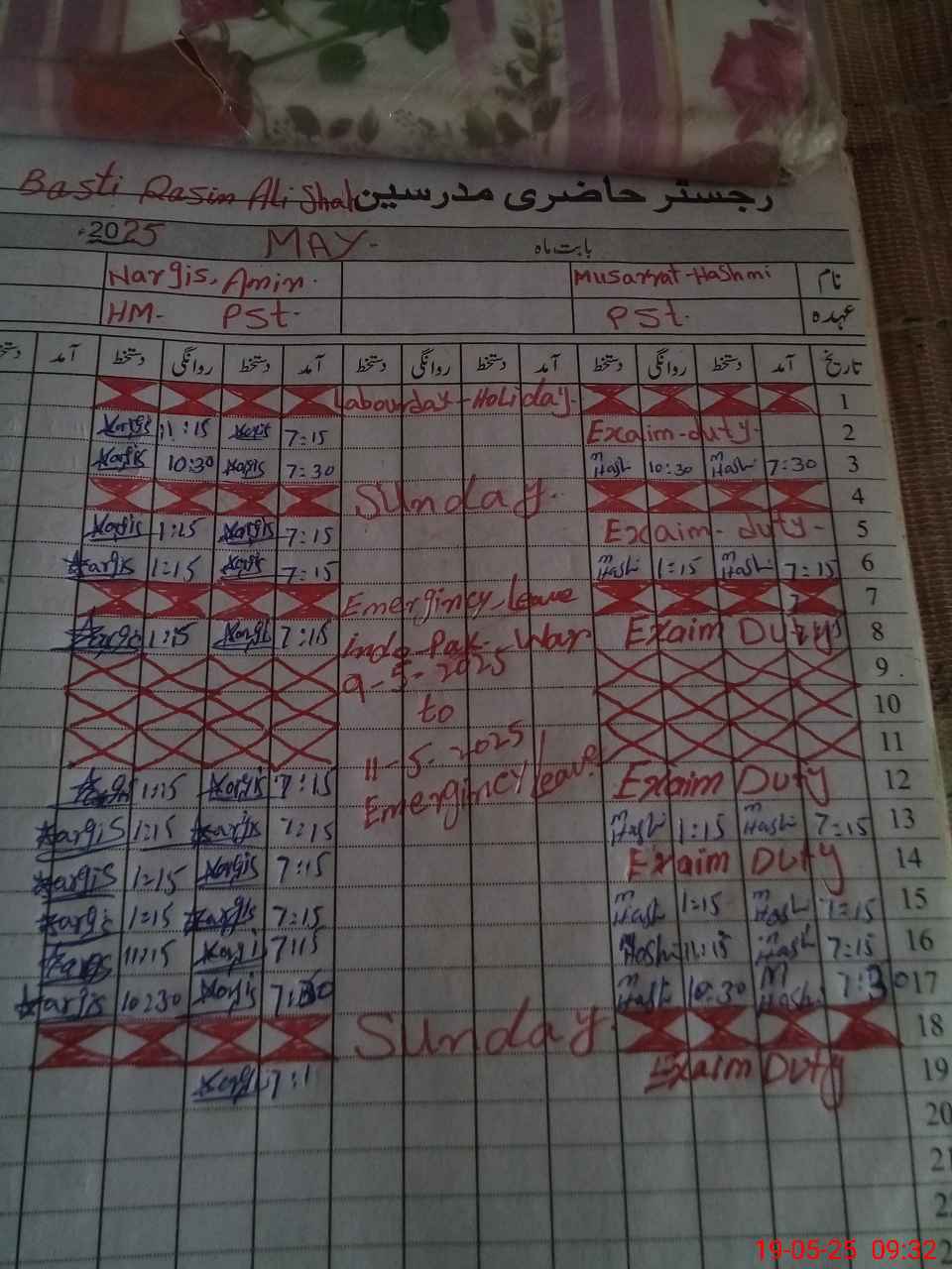 | 33**** | Mu**** Be**** | PST | Regular | 0 | 0 | 0 | 0 | 0 | 0 | 0 | 0 | 0 | Exam Duty |