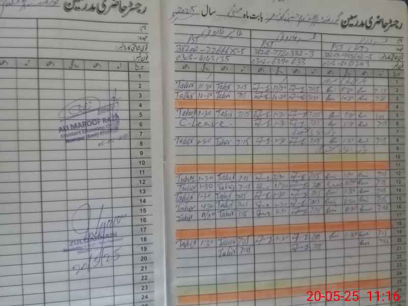 | CNIC | Full Name | Designation | R/C | Absence During Last Calender Month |