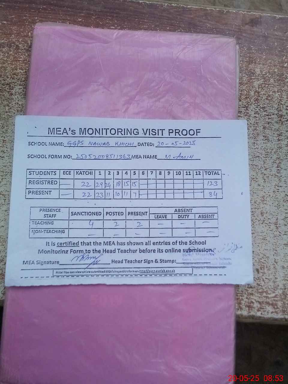 | EMIS Code: 36430383 | Name of School: GGPS NAWAB KHICHI, TULAMBA | |||