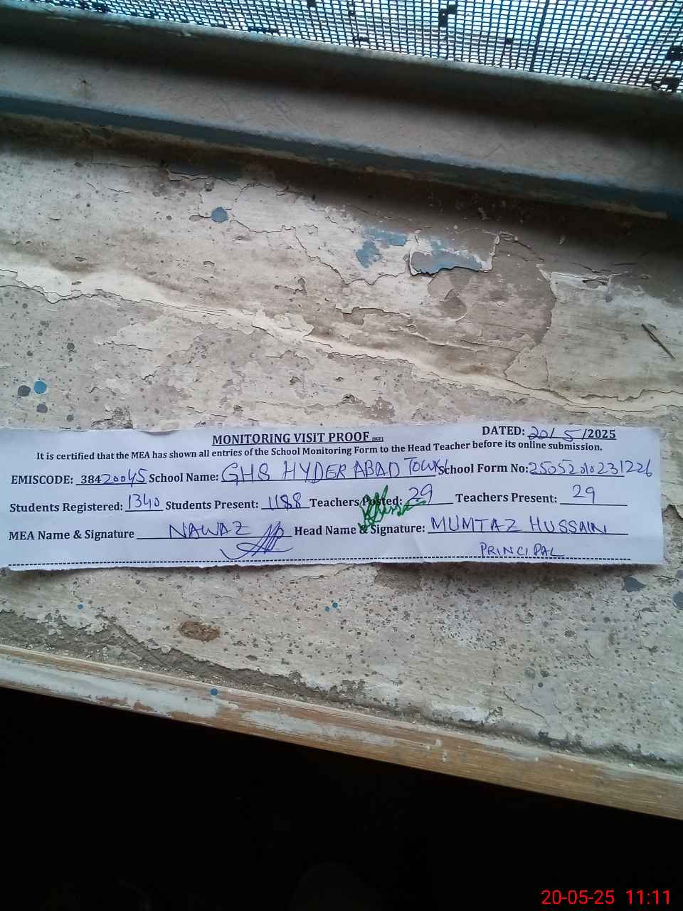 | Attendance Register | Head Teacher | MEA with School | Visit Proof |