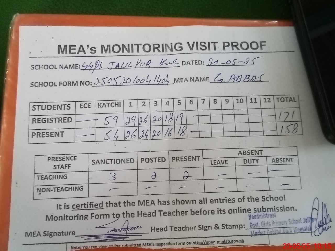 | EMIS Code: 36410460 | Name of School: GGPS JALIL PUR, ABDUL HAKIM | |||