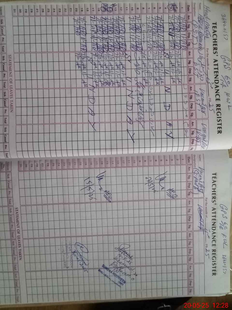 | Remarks (Use Separate Page if Required): Attendance taken from attendance registers due to hot weather new timing head teacher pack up the all students at 11 30 02 teachers are present in the school | |||||