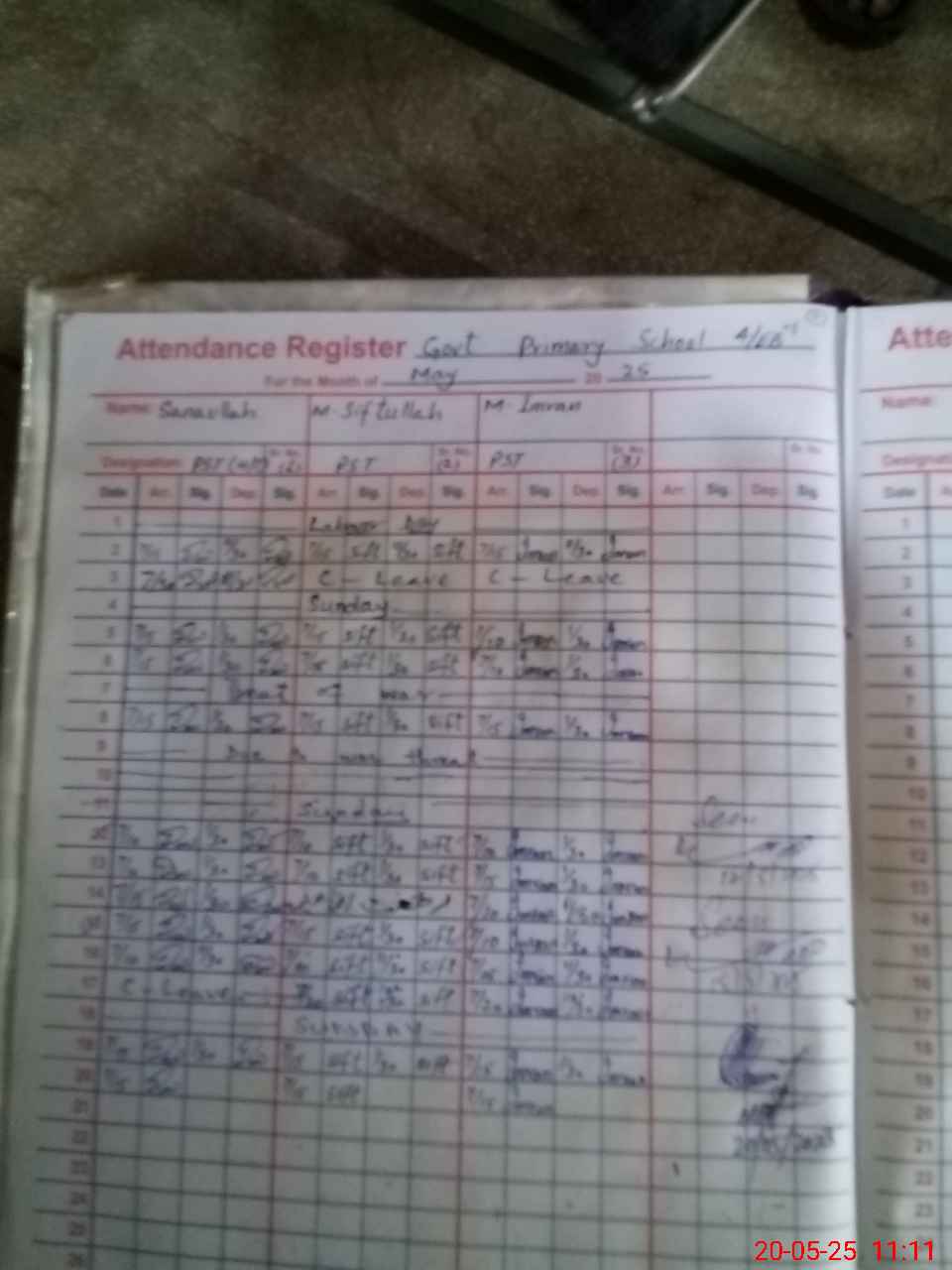 | Name: SA**** UL**** Designation: (School Headmaster's/Headmistress's) PST Phone/Cell Number: 03**** |