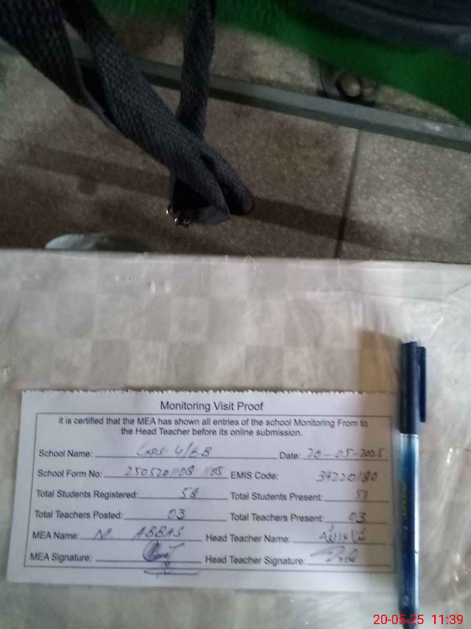 | Attendance Register | Head Teacher | MEA with School | Visit Proof |