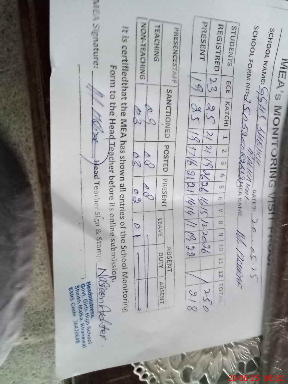 | EMIS Code: 36420648 | Name of School: GGHS SHEIKH MALKA | |||