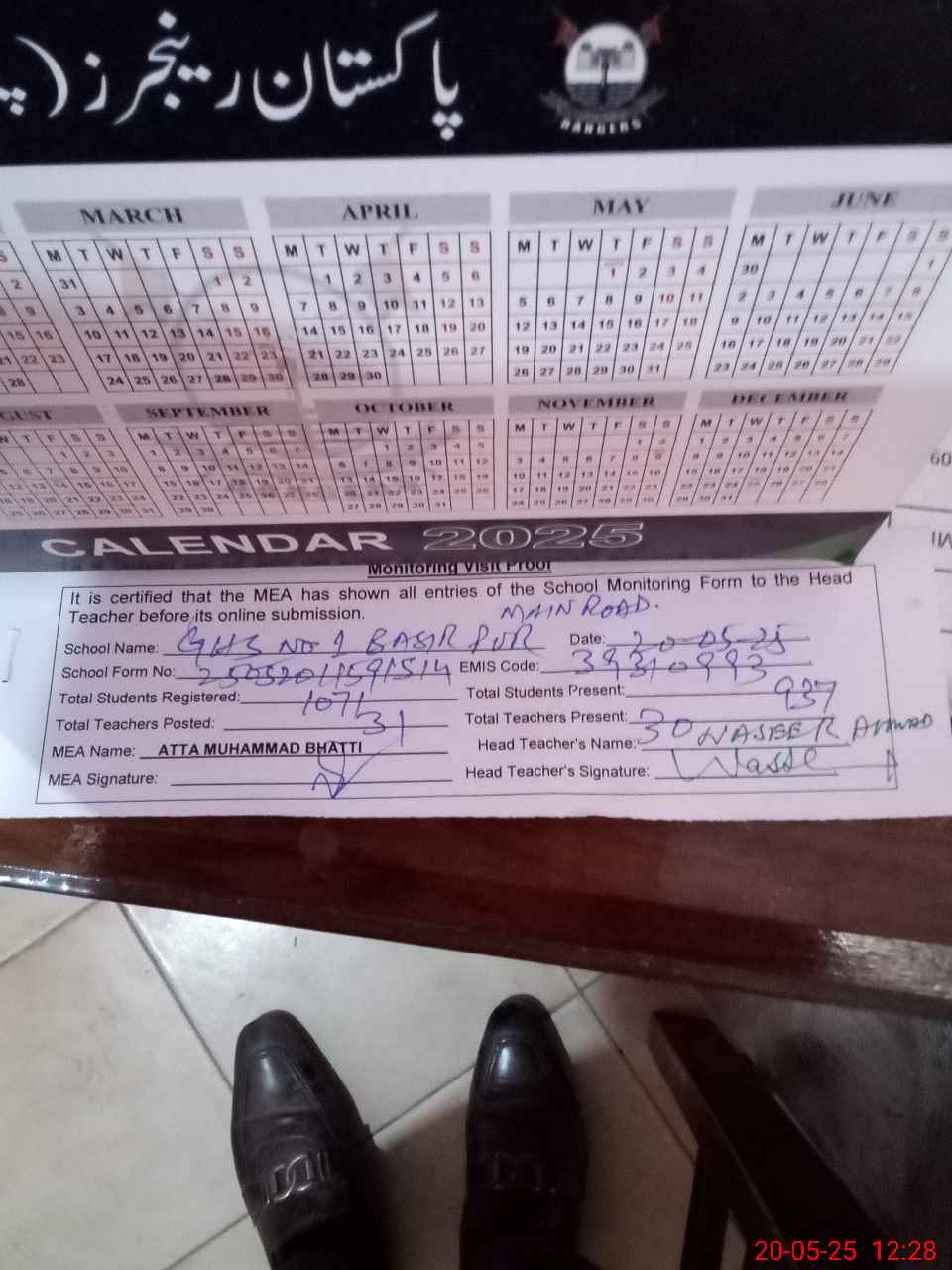 | Attendance Register | Head Teacher | MEA with School | Visit Proof |