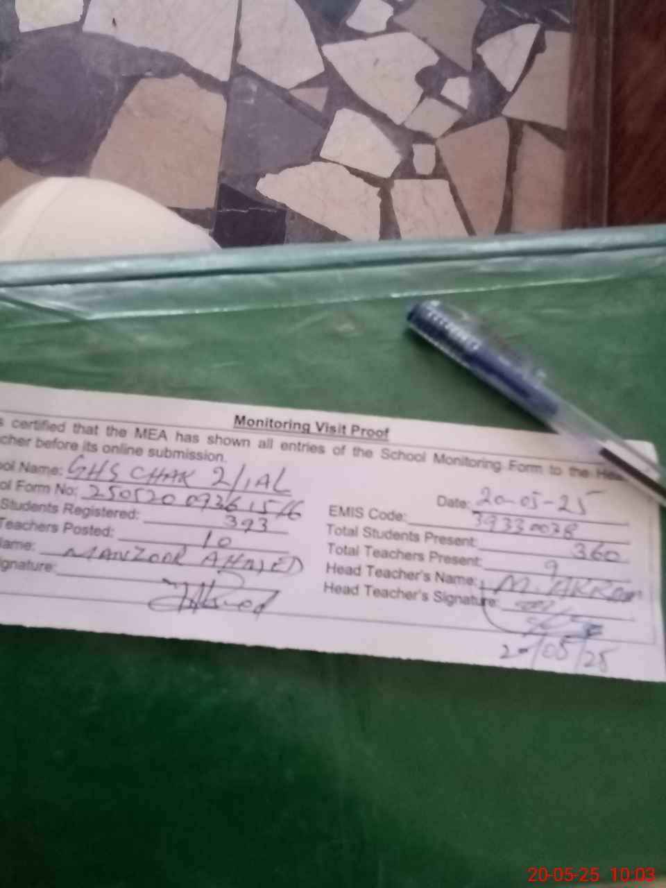 | EMIS Code: 39330038 | Name of School: GHS CHAK NO. 2/1-AL | |||