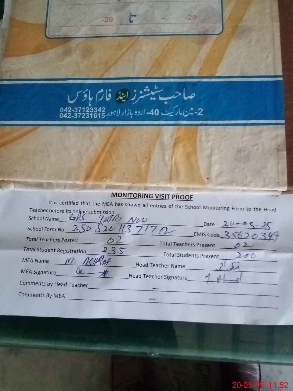 | EMIS Code: 35620349 | Name of School: GPS JATRI NOU | |||