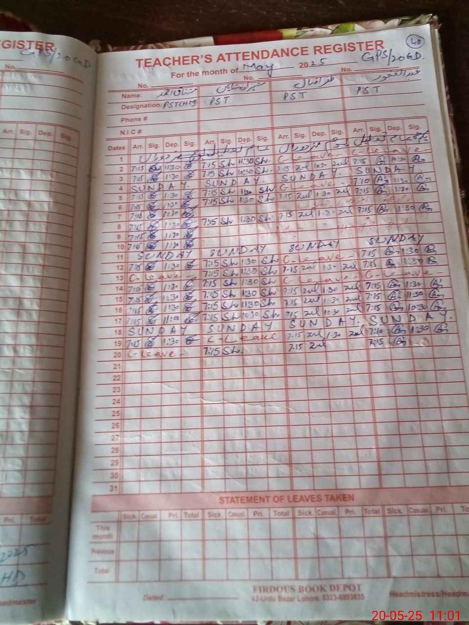 | 35**** | Sh**** Al**** | PST | Regular | 2 | 0 | 0 | 0 | 0 | 0 | 0 | 0 | 2 | Casual |