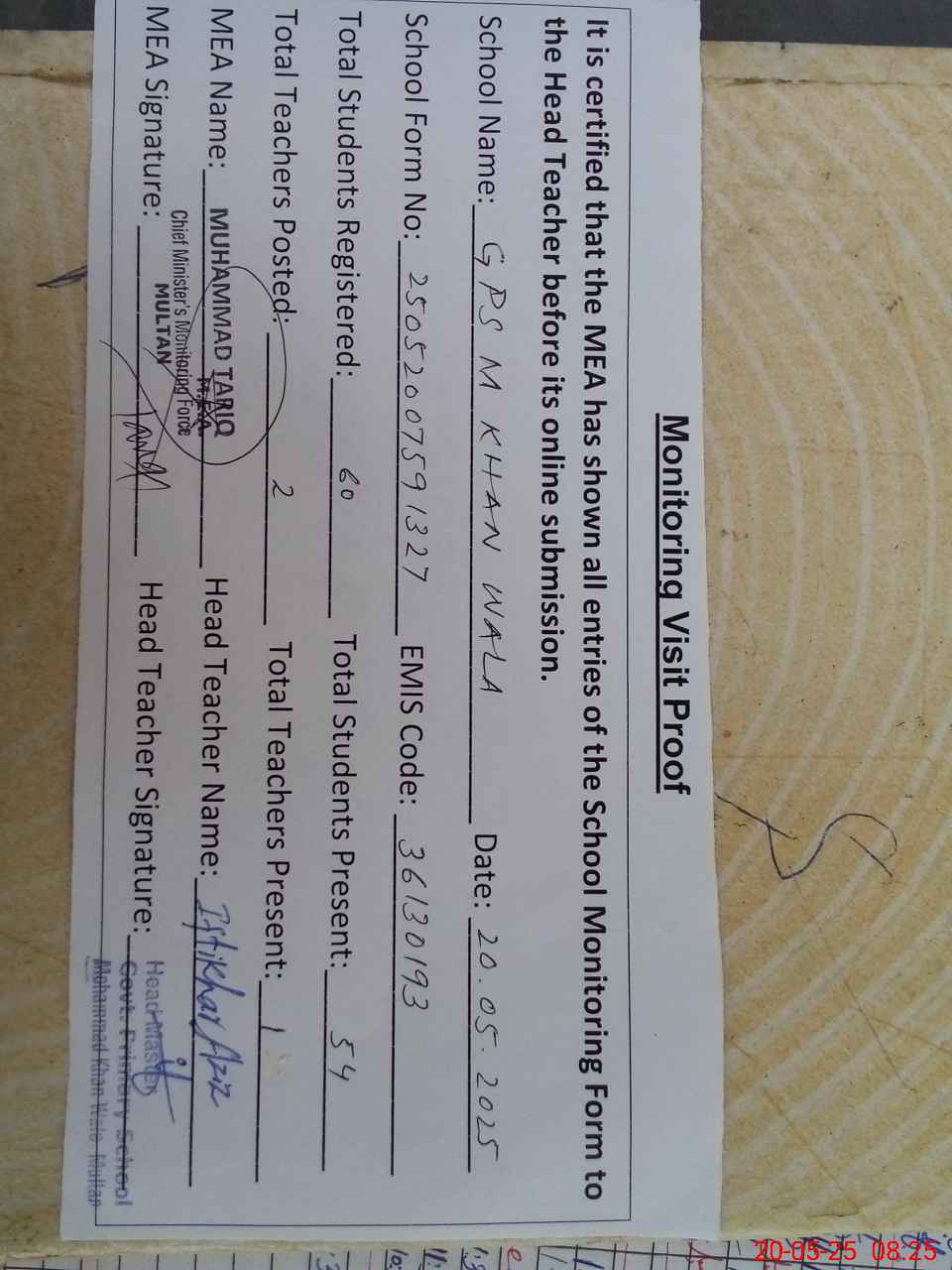 | EMIS Code: 36130193 | Name of School: GPS MUHAMMAD KHAN WALA P/O JAL WALA | |||