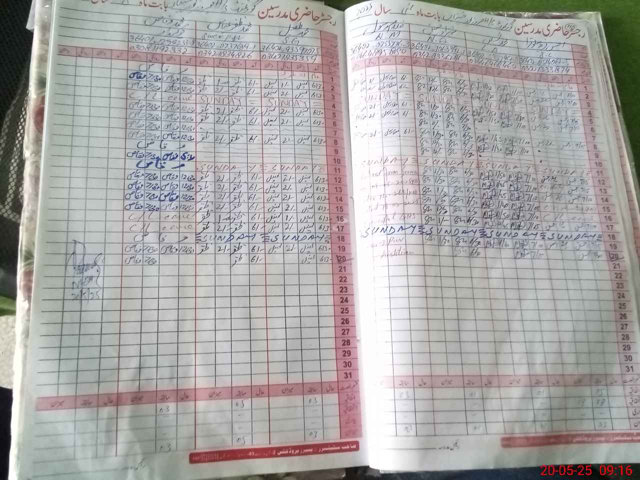 | CNIC | Full Name | Designation | R/C | Absence During Last Calender Month |