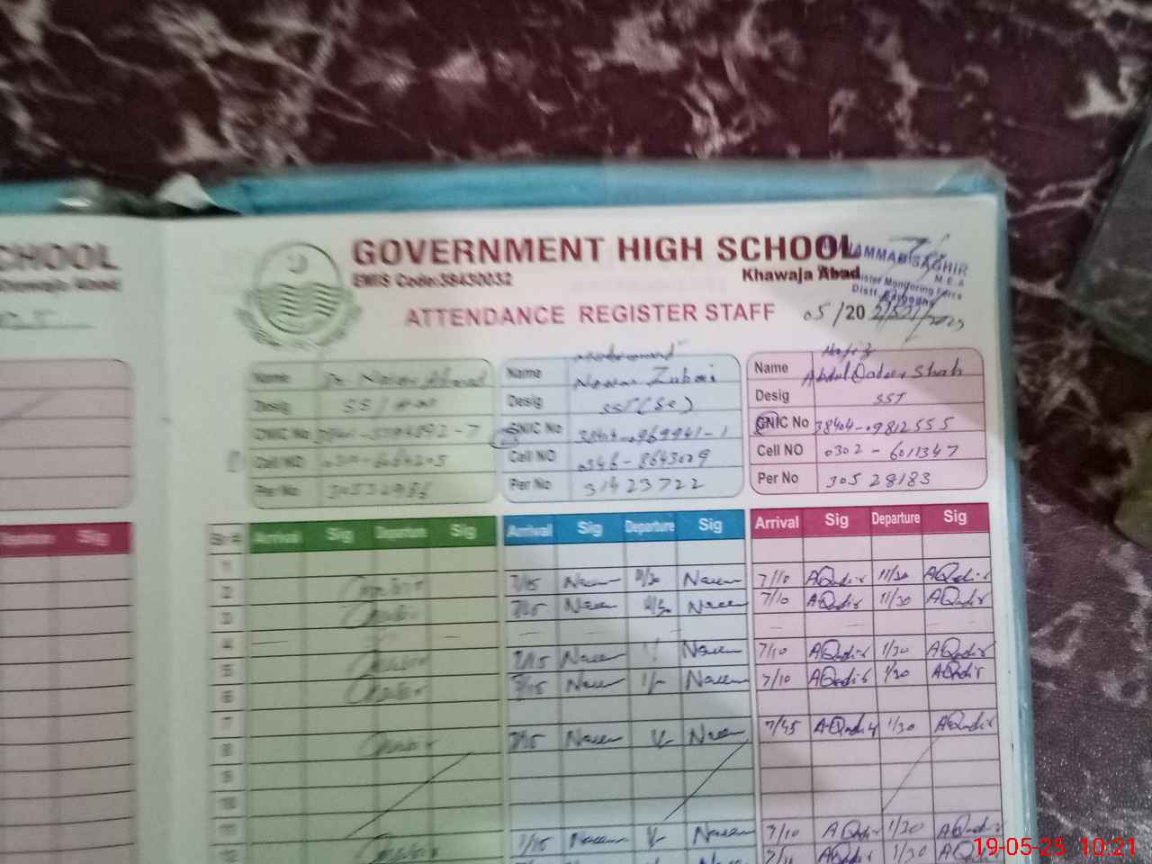 | Name: Mu**** Na**** Zu**** Designation: (School Headmaster's/Headmistress's) I/C HEADMASTER Phone/Cell Number: 03**** |