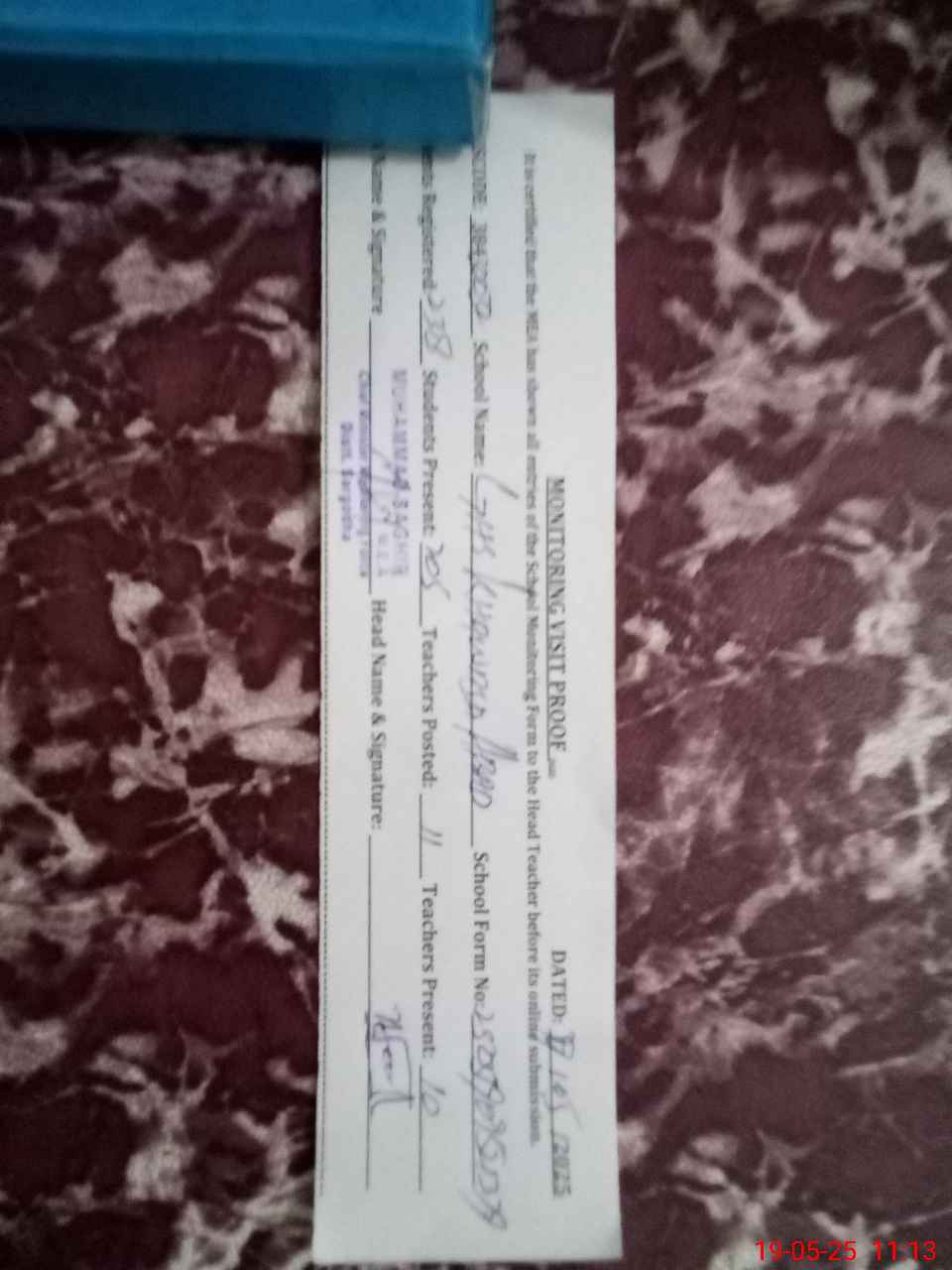 | Certified that this School was Inspected by the Undersigned MEA/DMO Today and the Information Stated Above is as Per Record. | |||||