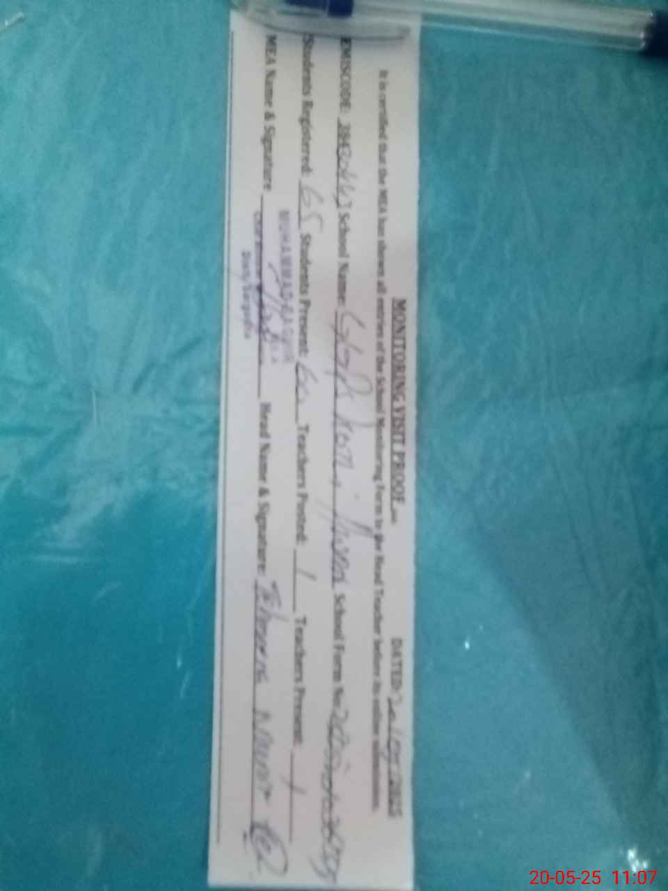 | Attendance Register | Head Teacher | MEA with School | Visit Proof |