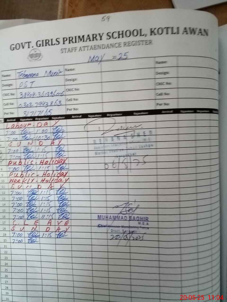 | Name: TE**** MU**** Designation: (School Headmaster's/Headmistress's) PST Phone/Cell Number: 03**** |
