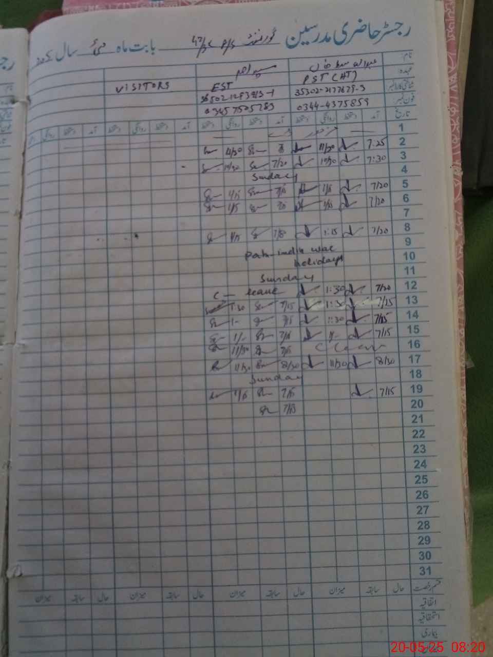 | CNIC | Full Name | Designation | R/C | Absence During Last Calender Month |
