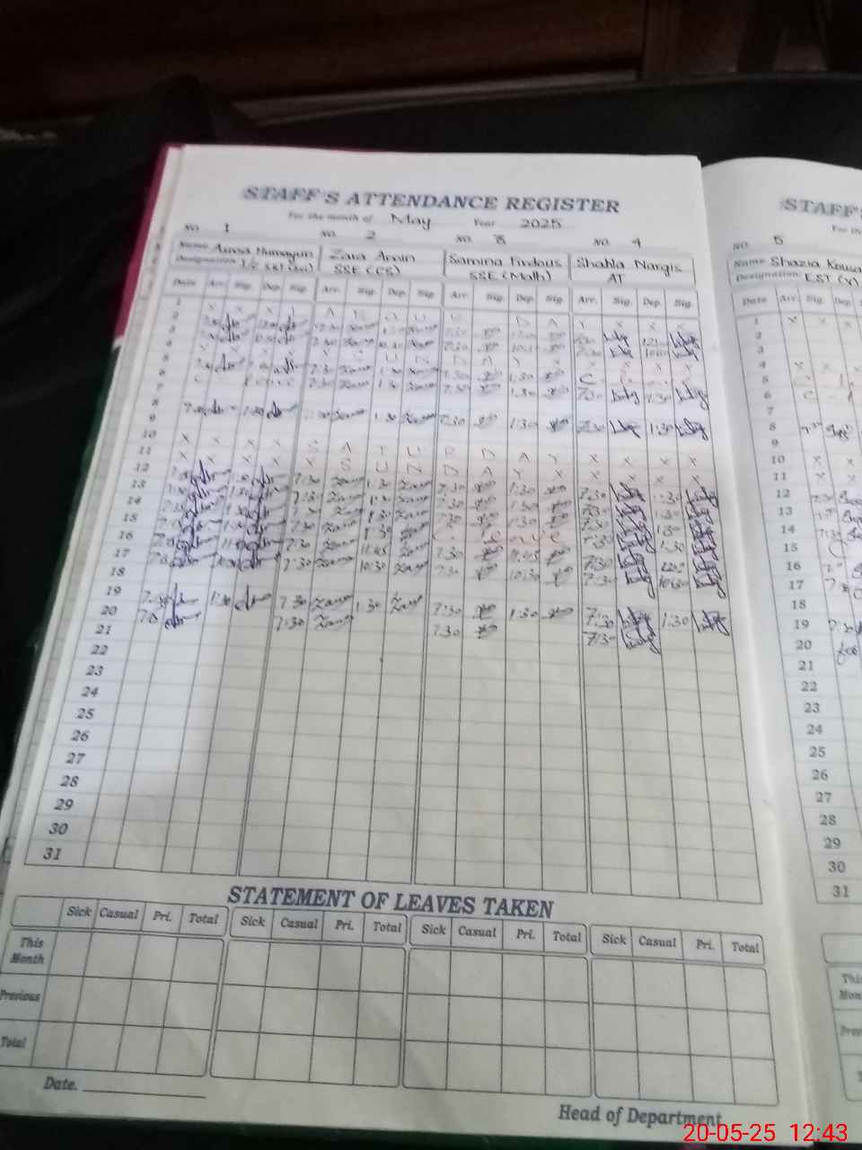 | Leave | Duty | Absent | Maternity | Medical | Ex- Pak |