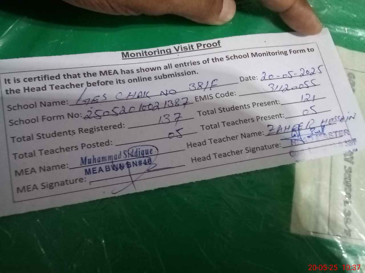 | EMIS Code: 31120055 | Name of School: GES CHAK NO. 38/F | |||