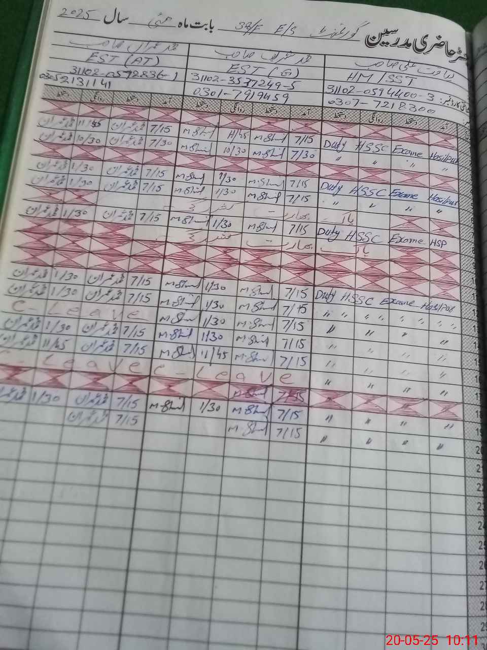 | Total no. of Classrooms: 10 No. of Classrooms Used for Teaching: 10 No. of Classrooms Storing Old Furniture, FTBs, etc: 0Comments if Any: Two STIs are employed in this school Named Amjad Ali CNIC no 31102094413 Ali Raza Sayed CNIC no 311020843203 |