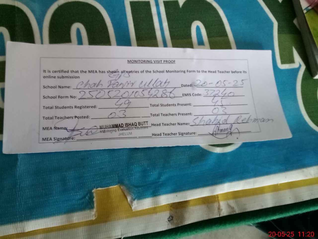 | EMIS Code: 37240213 | Name of School: GPS CHAH FAQIR ULLAHA | |||