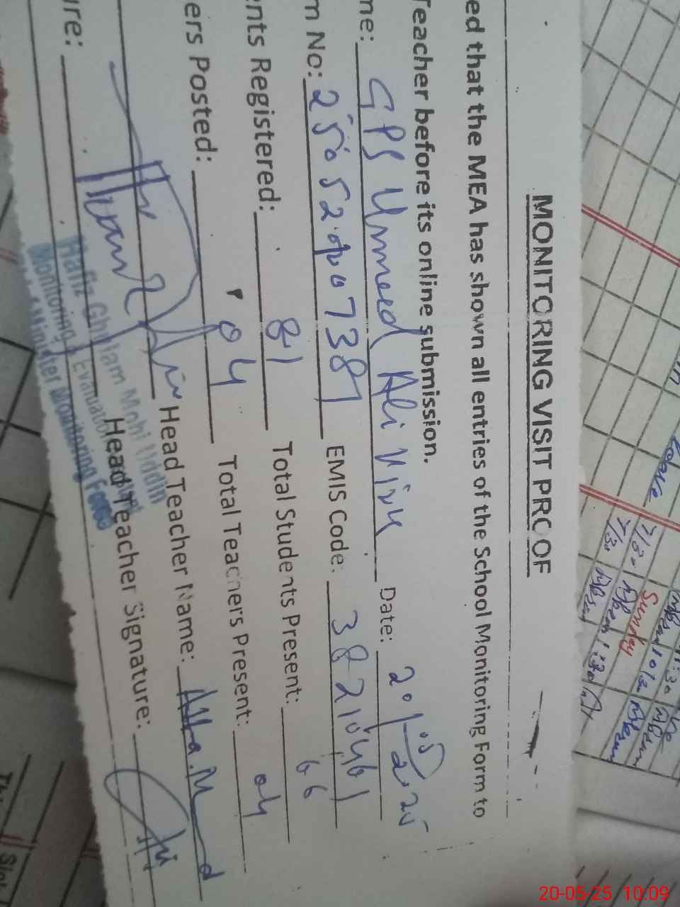 | EMIS Code: 38210461 | Name of School: GPS UMEED ALI VIRK | |||