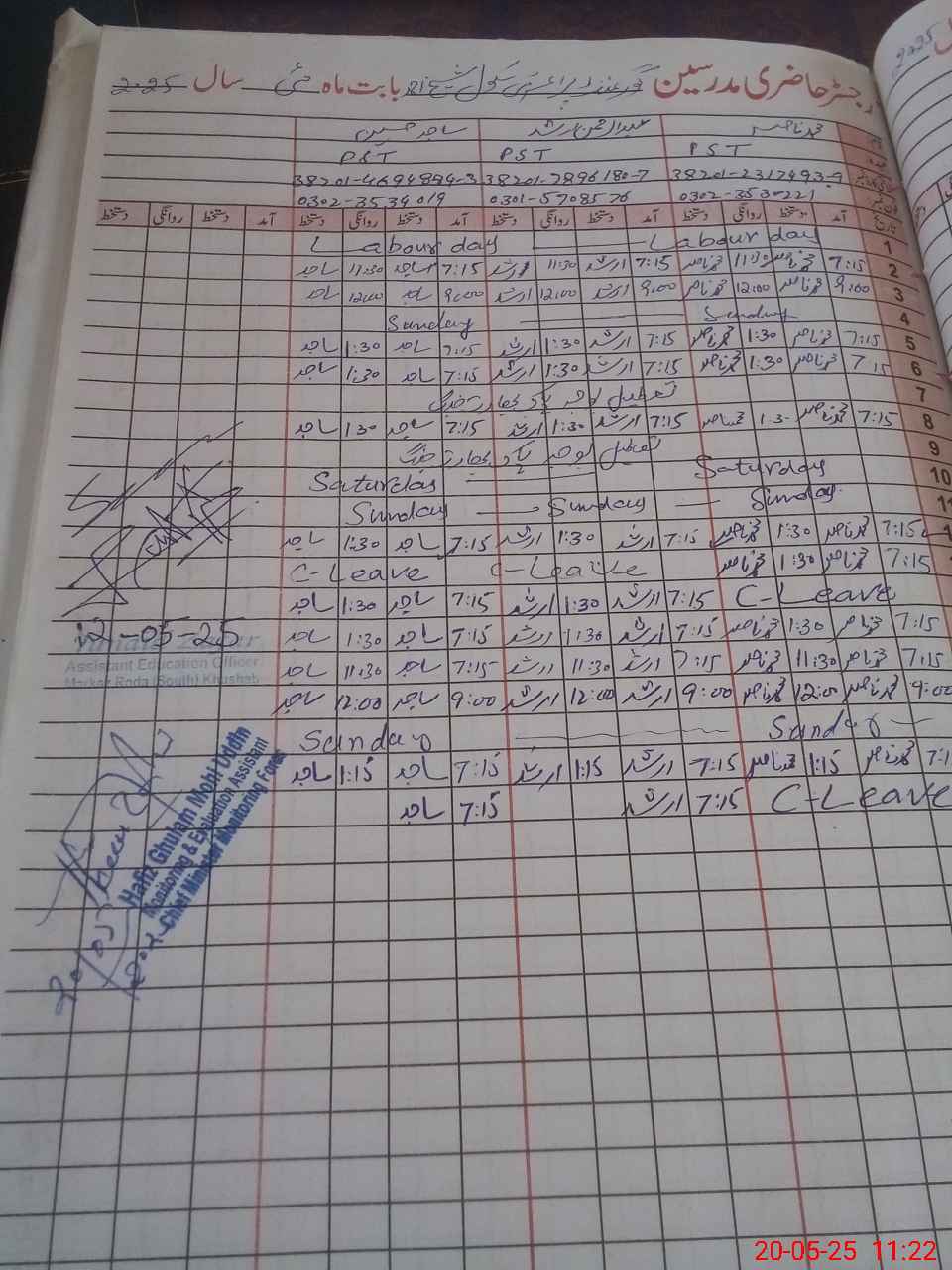 | Name: Mu**** Na**** Designation: (School Headmaster's/Headmistress's) PST Phone/Cell Number: 03**** |