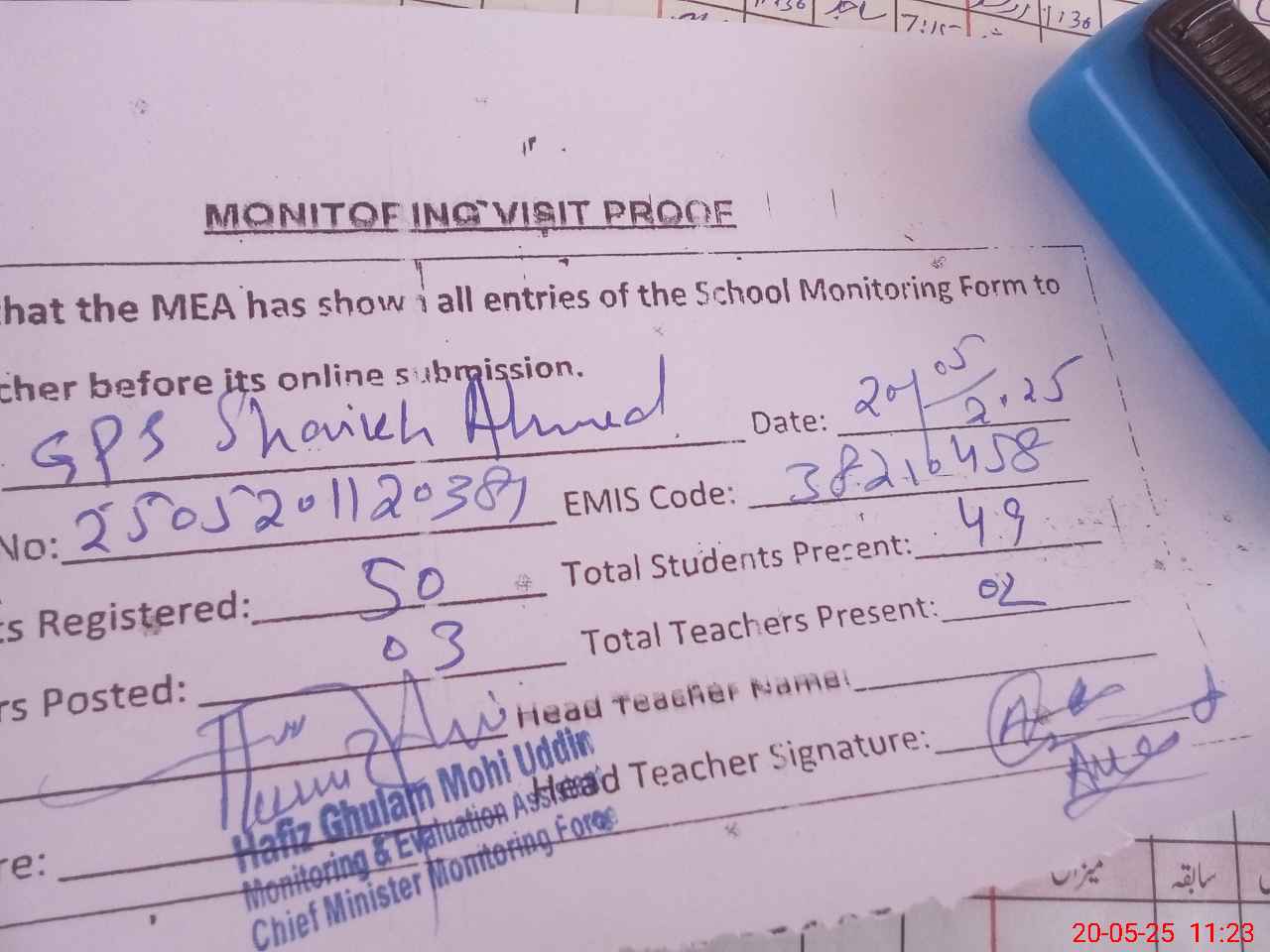 | EMIS Code: 38210458 | Name of School: GPS SHEIKH AHMAD | |||