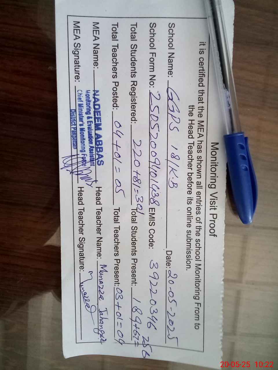 | EMIS Code: 39220346 | Name of School: GGPS 18 KB | |||