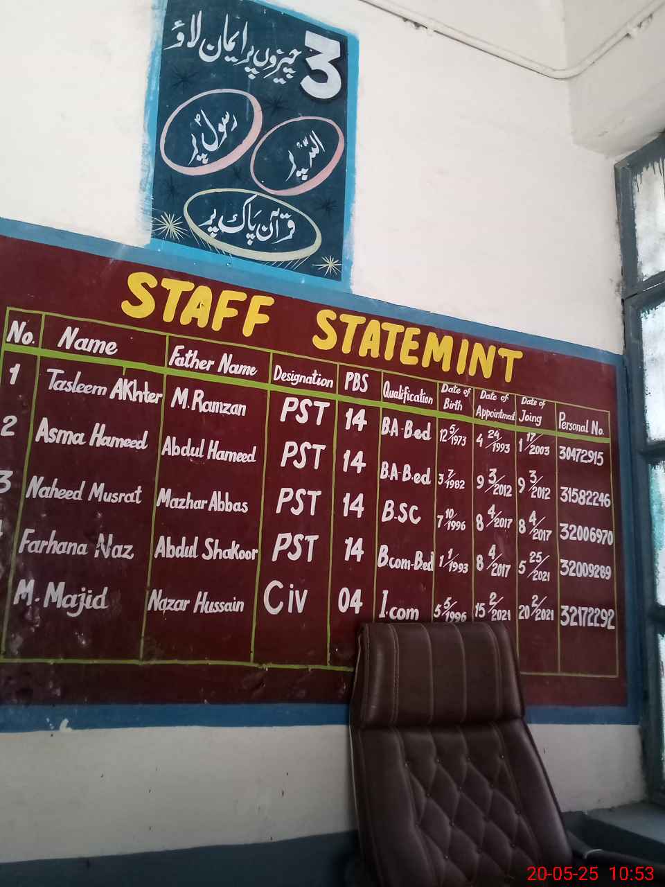 | Name: TA**** AK**** Designation: (School Headmaster's/Headmistress's) PST Phone/Cell Number: 03**** |