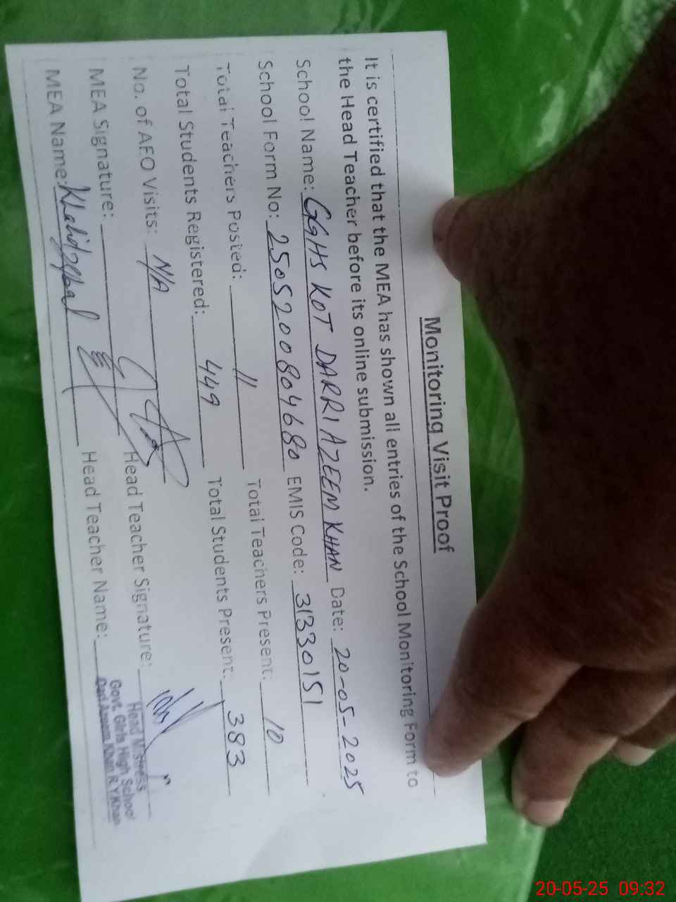 | EMIS Code: 31330151 | Name of School: GGHS KOT DARRI AZEEM KHAN | |||