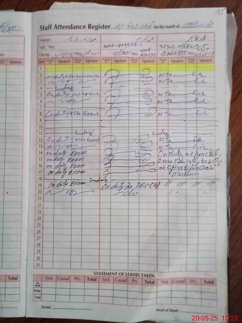 | 36**** | Ma**** Hu**** Kh**** | SST | Regular | 0 | 0 | 0 | 0 | 0 | 0 | 0 | 0 | 0 | Exam Duty |