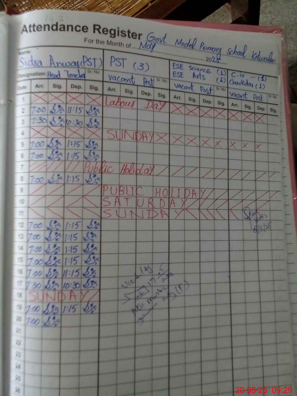 | Name: SI**** AN**** Designation: (School Headmaster's/Headmistress's) PST Phone/Cell Number: 03**** |