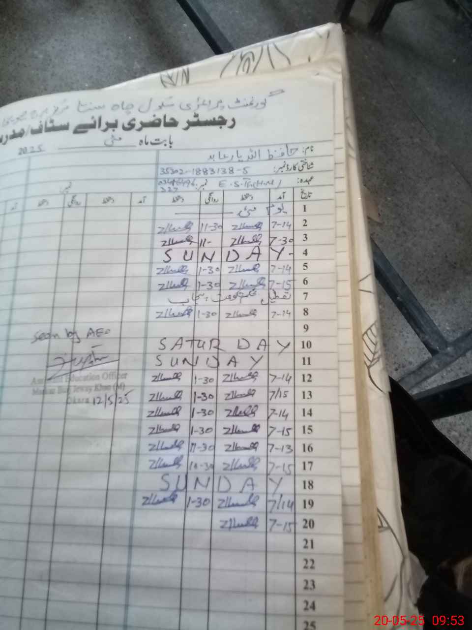 | Name: HAl**** Ya**** Ab**** Designation: (School Headmaster's/Headmistress's) EST Phone/Cell Number: 03**** |