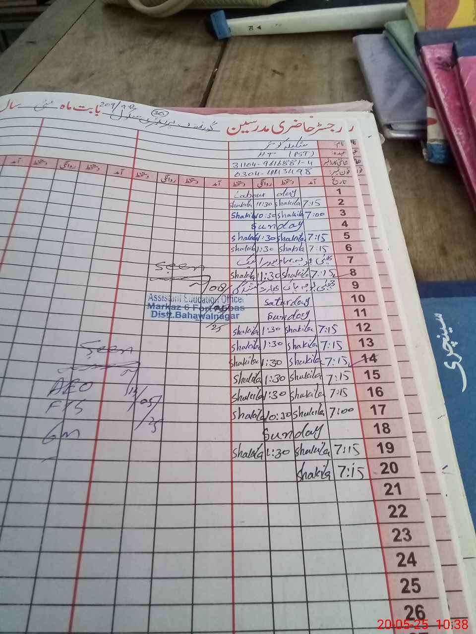 | CNIC | Full Name | Designation | R/C | Absence During Last Calender Month |