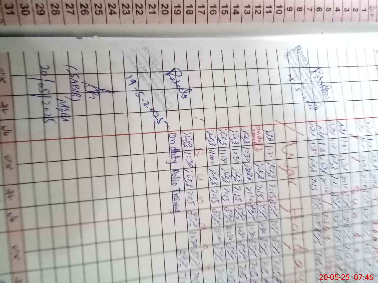 | Monitoring Date: 20-05-2025 | Start Time: 20-05-2025 07:25 AM | End Time: 20-05-2025 07:58 AM | Name of MEA: SA**** HU**** | |